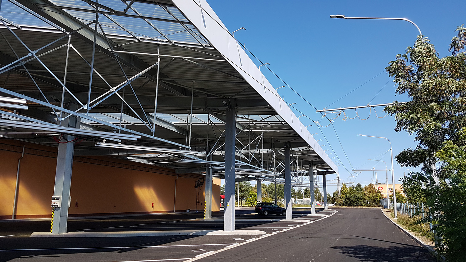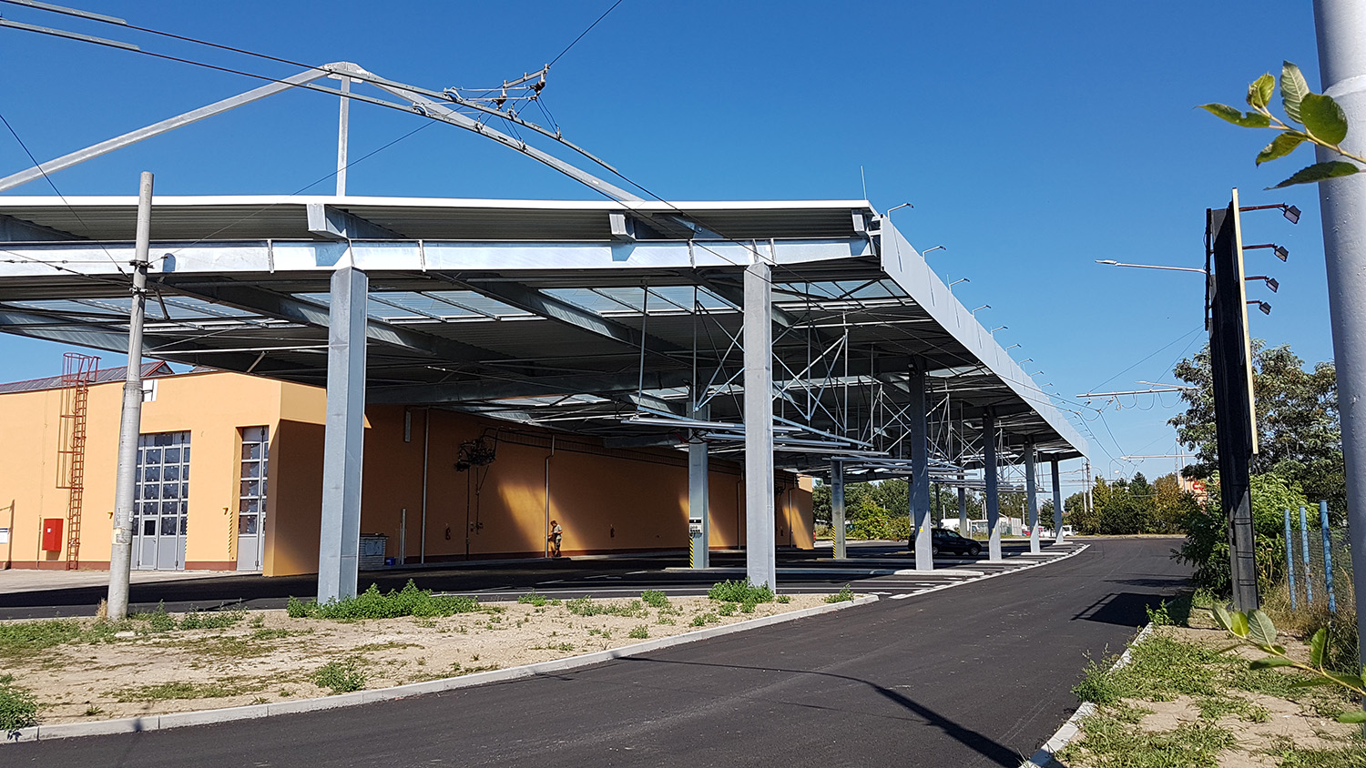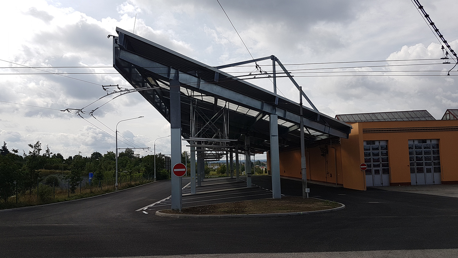 Nové odstavné stání pro trolejbusy a elektrobusy Dopravního podniku města České Budějovice rozšiřuje zázemí městské dopravy. Objekt tvoří zpevněná asfaltová plocha se zastřešením z ocelové konstrukce, pod kterou se nachází trolejová vedení pro dobíjení elektrobusů. Stavba přispívá k modernizaci a ekologizaci městské hromadné dopravy.